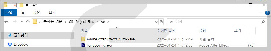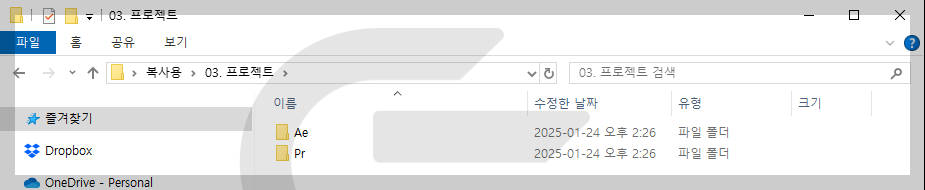 - 하위 폴더: Ae, Pr 폴더 생성 후 빈 프로젝트파일 넣을 것 - Exports_Rough Cut: 가편집 출력본