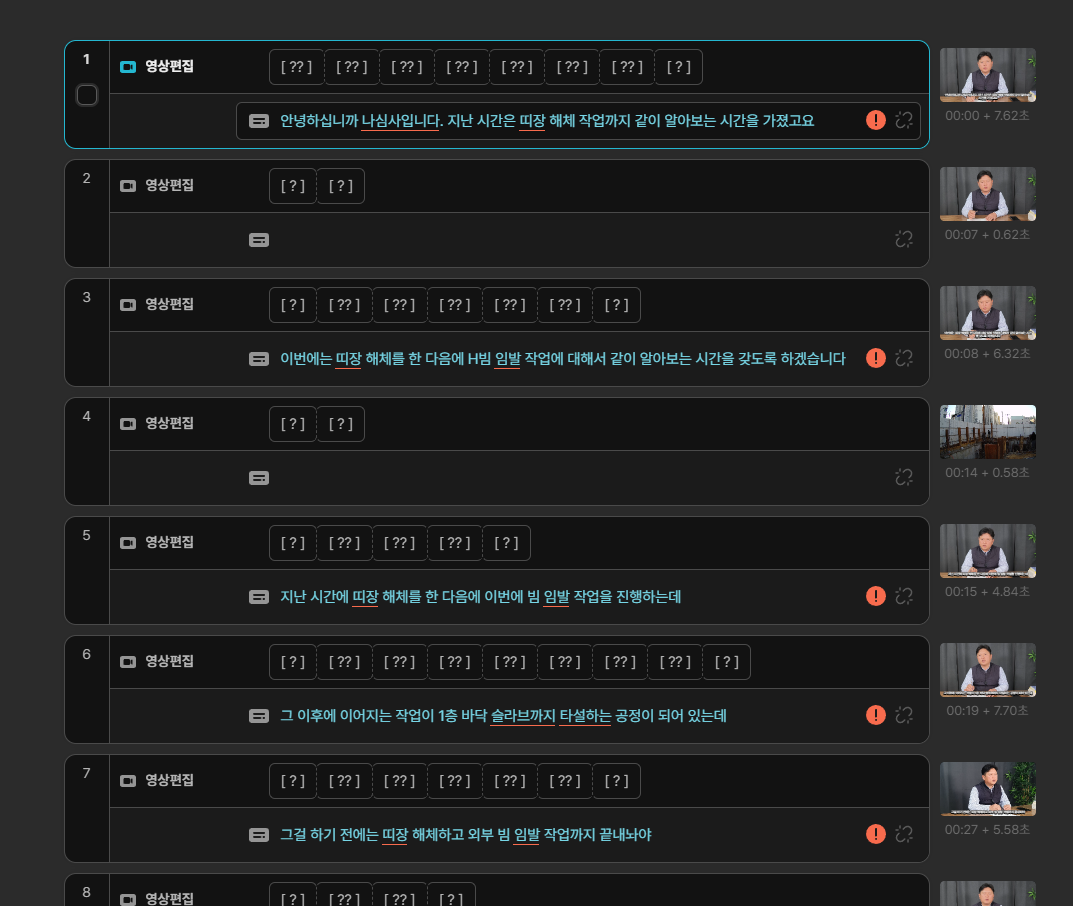 - Vrew에 영상과 SRT 파일을 올려서 자막 싱크 및 오탈자 수정