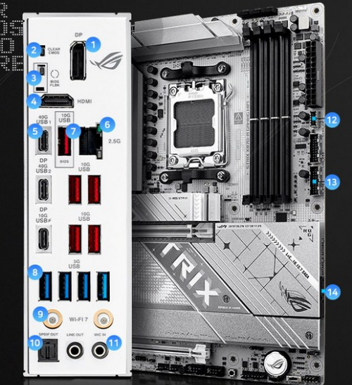 - 주요 특징: 최신 AMD X870 칩셋, 강력한 전원부, PCIe 5.0 GPU 슬롯 및 다수의 PCIe 5.0 M.2 슬롯, USB4 40Gbps, Wi-Fi 7, 2.5GbE LAN, ATX 폼팩터.