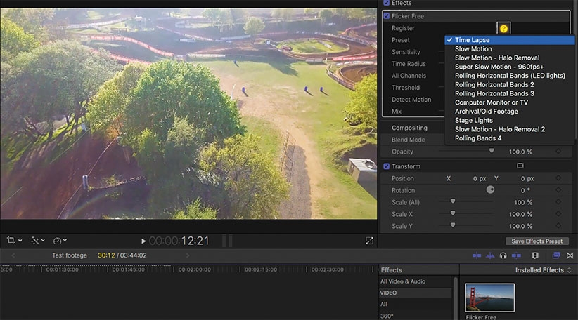 특히 타임랩스, 슬로우 모션 촬영에서 발생하는 플리커 현상을 간편하게 해결할 수 있어 전문적인 영상 제작에서도 자주 사용됩니다.